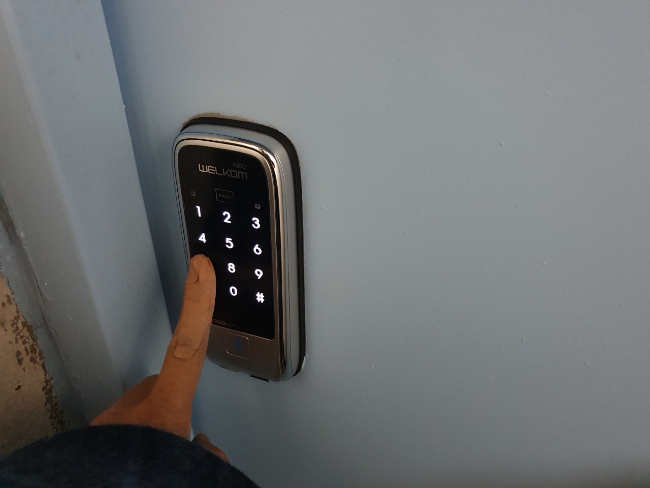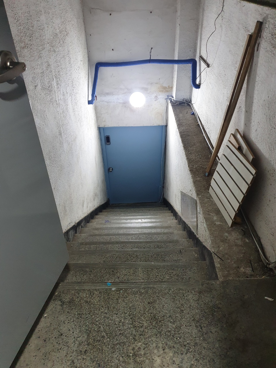 입구를 통해 내려가셔서 안내 받으신 도어락 비밀번호를 입력해주시면 됩니다.